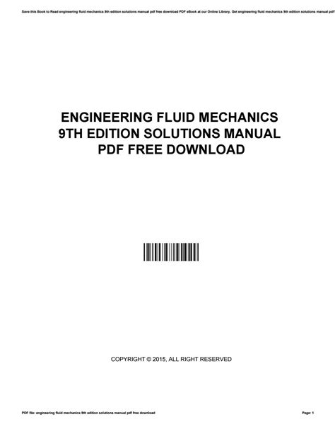 Read ENGINEERING FLUID MECHANICS 9TH EDITION SOLUTIONS MANUAL FREE DOWNLOAD Paperback Library Genesis